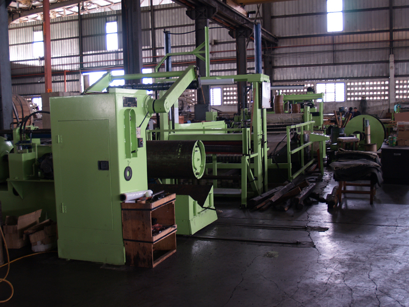 The splitter consists of three main parts, an uncoiler, splitter, and recoiler" the material is fed from the uncoiler, through the nip between the two circular cutting wheels (one on top and another underneath) and then re-wound in slit pieces on the recoiler.